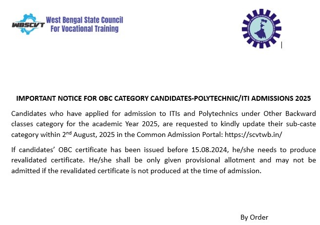 The WBSCVT website uses online forms, where you may be asked to provide certain personal information. This is necessary to access certain services in the website for the Admission Process and other activities. By filling out and submitting the form, you are understood to have consented to WBSCVT storing and using the information for the purposes for which it has been provided.